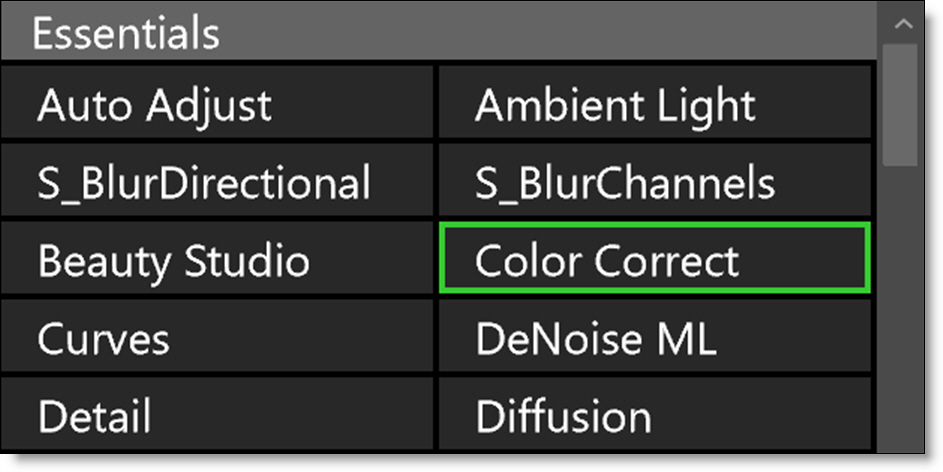 Some filters contain multiple preset groups which are selectable at the top left of the Presets window.