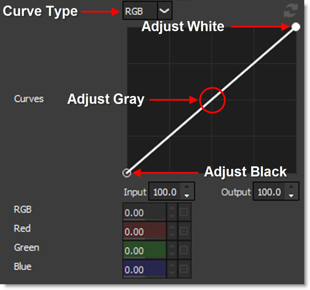 • Select RGB, Red, Green or Blue from the Curve Type pop-up menu.