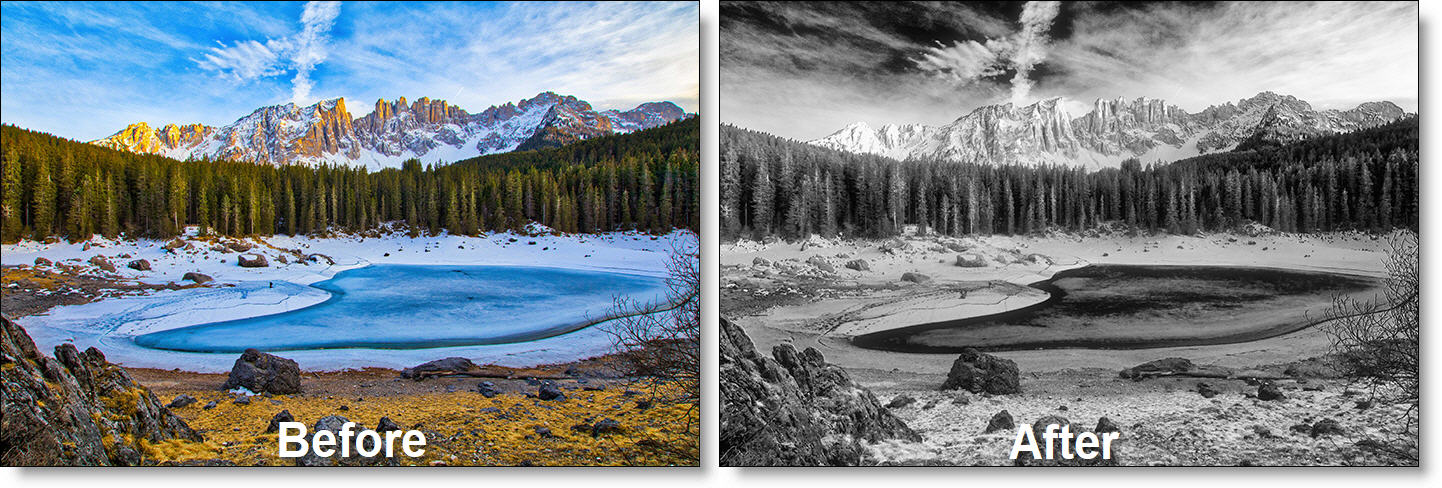 Selects the type of black and white filter to be applied to your color image. Go to the Black and White section of Common Filter Controls to see how the Black and White controls work.