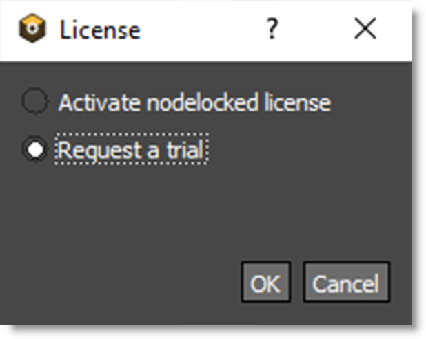 3 Select Activate nodelock license in the License window and click OK.