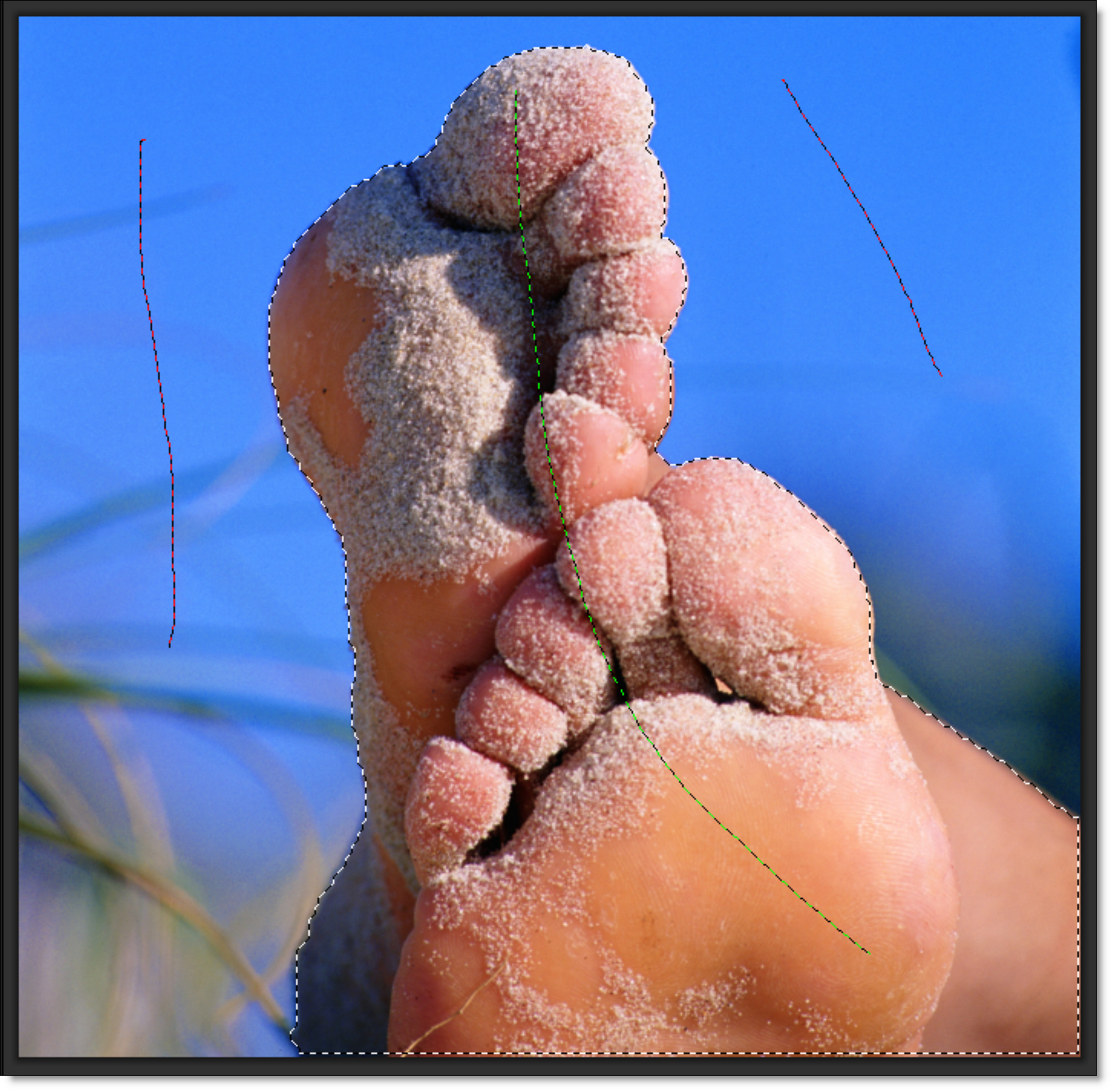 Click the Mark Foreground icon and draw lines to mark the foreground area--the region to be isolated. With each click and drag of the mouse, a green line is drawn.